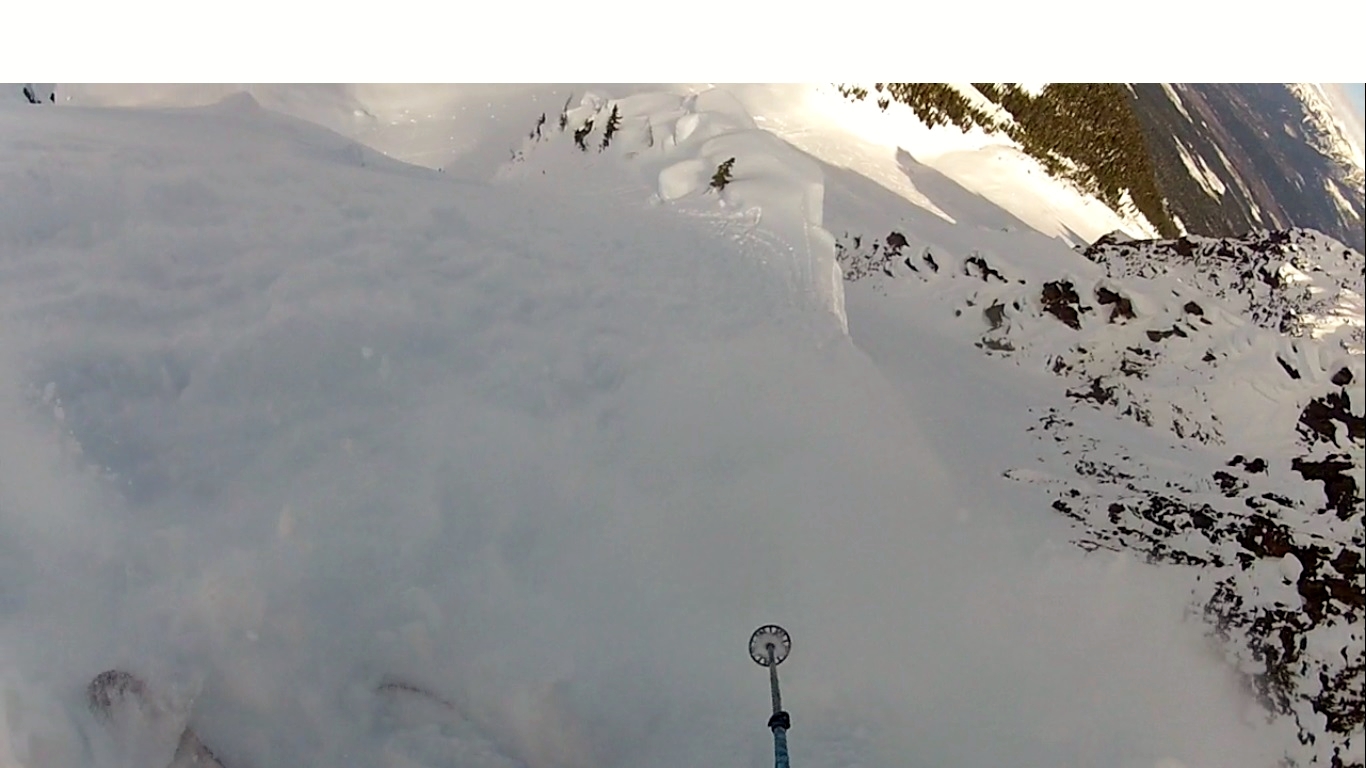 Surfing some turns out of the spine while my slough heads down to make a waterfall over the exposure