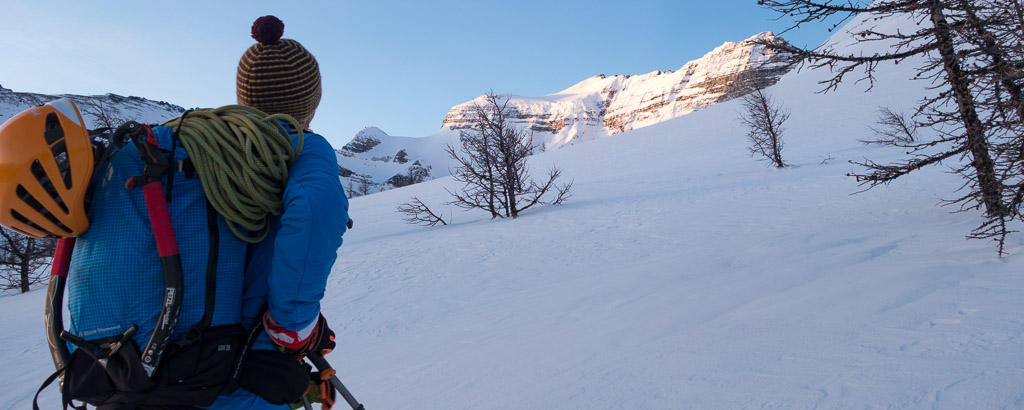 When I first took a decent look at the north couloir on Popes Peak, I thought it looked rather burly on its own. Admittedly, I think I was about 12 years old. Imagine my amazement when I realized, a number of years later of course, that Jon Walsh and Chris Brazeau had laid down a descent of not just the couloir, but the direct summit line above. Everything about it caught my interest – from the hard (to me) sections of alpine climbing to the new school technical, steep skiing to the roadside adventure feel that so accurately characterizes the Rockies as a range. It seemed to embody everything about the skier and mountaineer I hoped to become and I was nowhere near ready for it. So, on the back burner it stayed for years. This season though, I’ve been chasing technicality in my skiing more than ever. Back in late April, after getting a good look at the line from our big day on Narao, Joel and I decided it was time to see how we measured up.