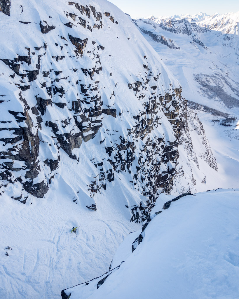 Thing is, I never just trust what seems like good stability in the wintertime. Or really, ever. Call me paranoid, but I like to feel things out for myself and draw my own conclusions. So when this obvious window rolled in, Kieran, Joel and I started somewhat small. On day one of the high pressure, we took a little walk up Young’s Peak and a little ski down the Forever Young couloir. There were a few tracks in it already, but it gave us a great opportunity to get up high, look around and feel things out on multiple aspects. We liked what we saw, so the following day, Kieran and I decided to step it up a notch.