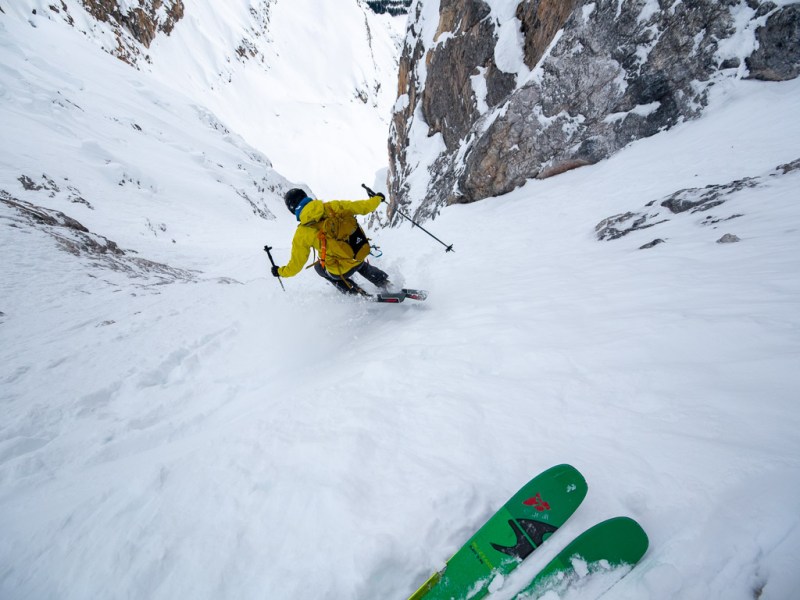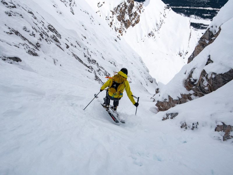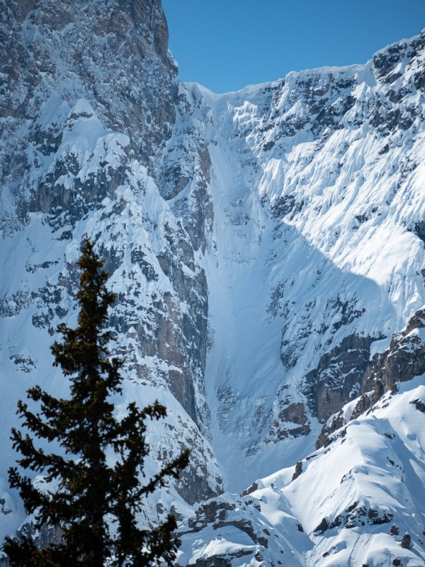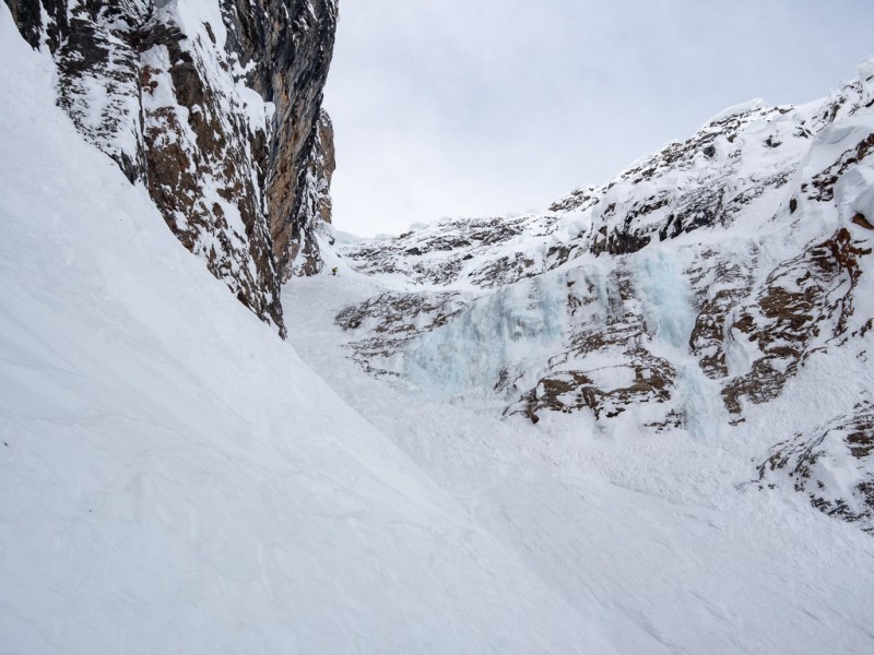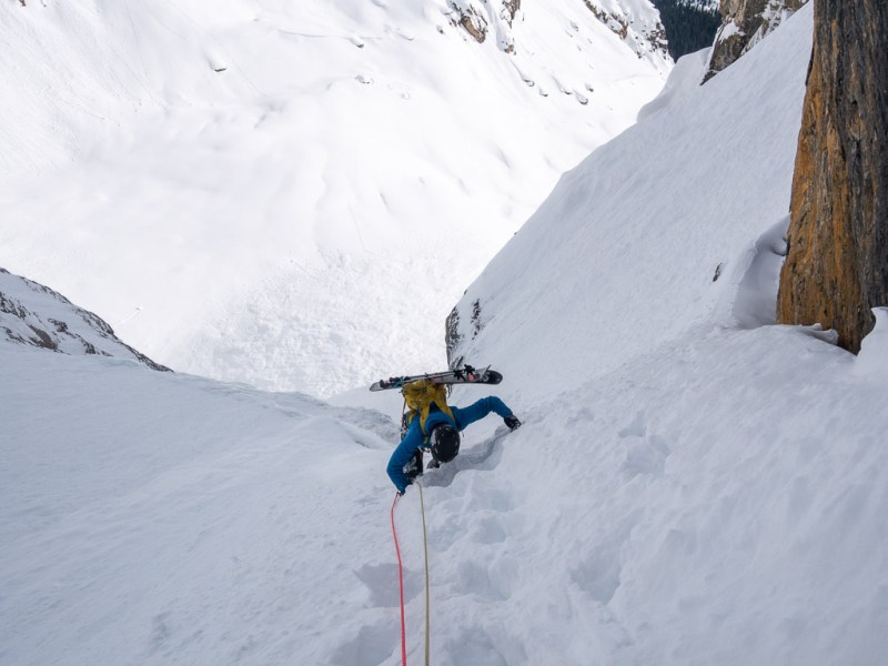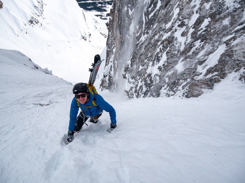 At least, that’s the way it feels if it’s interesting enough. And, tucked away on Crowfoot Mountain, Janoline Couloir certainly is.
