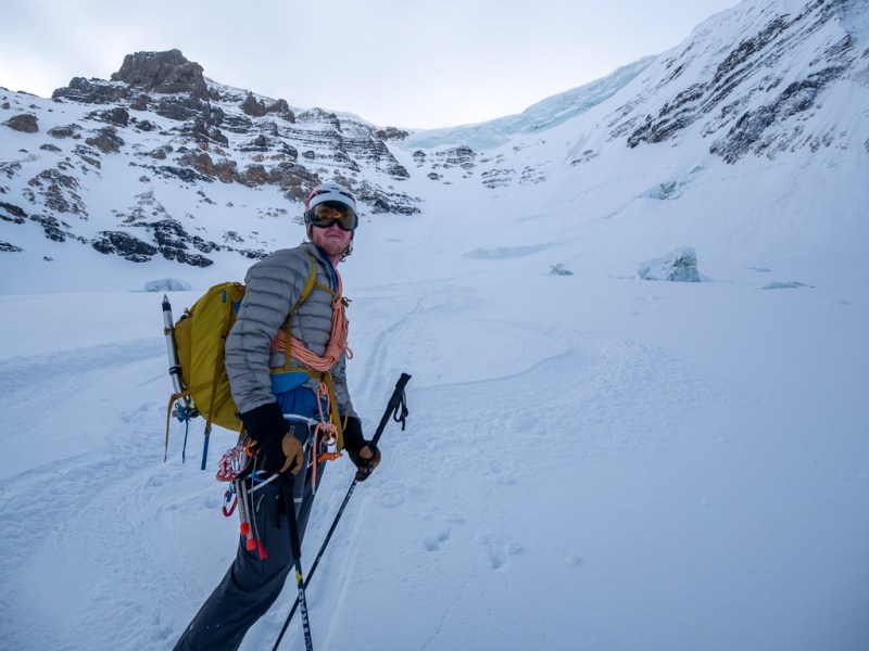 Last week I bailed on an objective close to home because the approach was too heinously melted out. Then, the other day, Kieran and I pulled the plug just above the bergschrund on the north face of Mt. Andromeda because the snowpack was far too wintery and unstable. Can’t win, apparently.