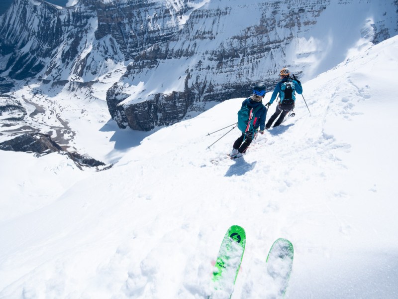 Standing on the shore of Lake Louise, the Mt. Victoria skyline dominates. Everything about it calls to me. The jagged ridge, the slow crawl of the glacier, peeling over the cliffs into spectacular seracs and the three mega classic ski lines – the Sickle, the NE Face and North Face. I’ve wanted to link those three lines in a day for years, in an linkup I like to call the Victoria’s Crown Traverse. Spoiler alert, I still haven’t. But here’s the story of my best effort yet.