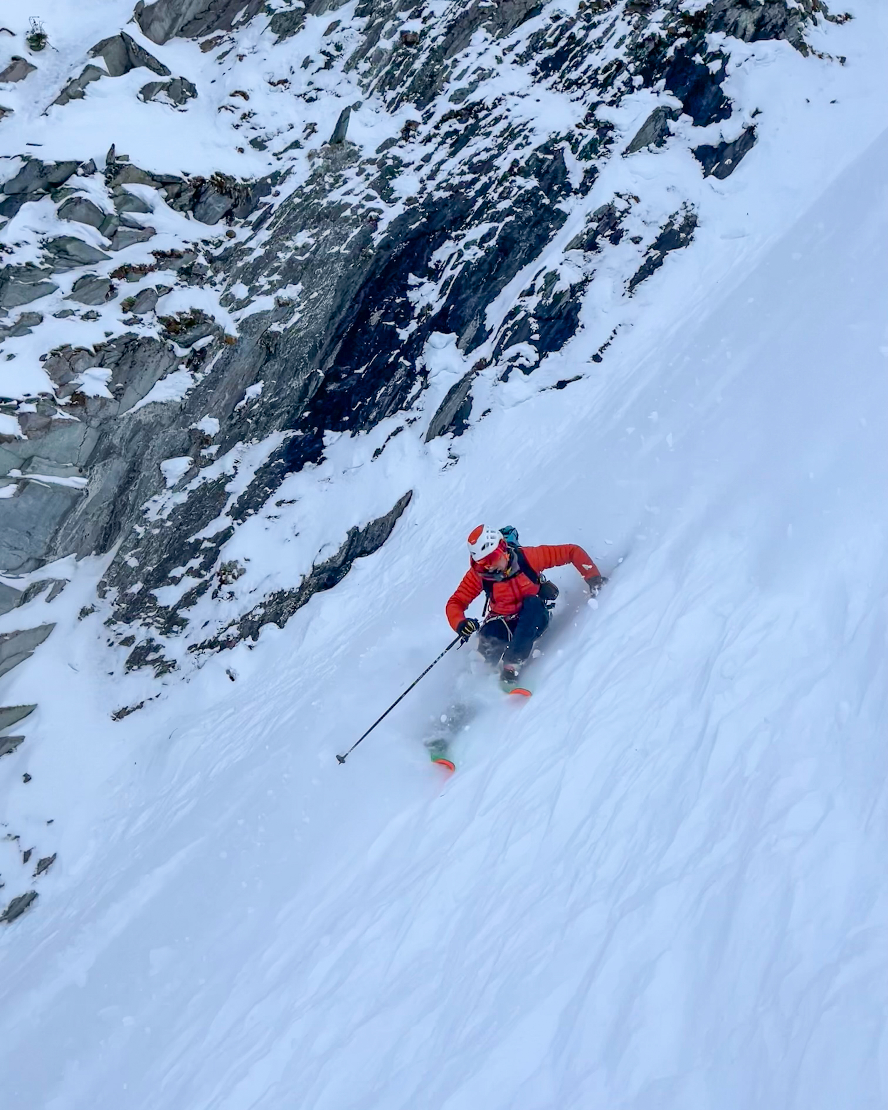 It took a little digging to find that, before performing a short rappel over the entrance slab. A bolder skier probably could have just sent it as conditions in the line were superb – but you’d sure hate to find out that they weren’t the hard way… Nearly perfect snow the whole way down had us feeling like it would be rude not to do another lap, so we transitioned and headed back around to oblige.