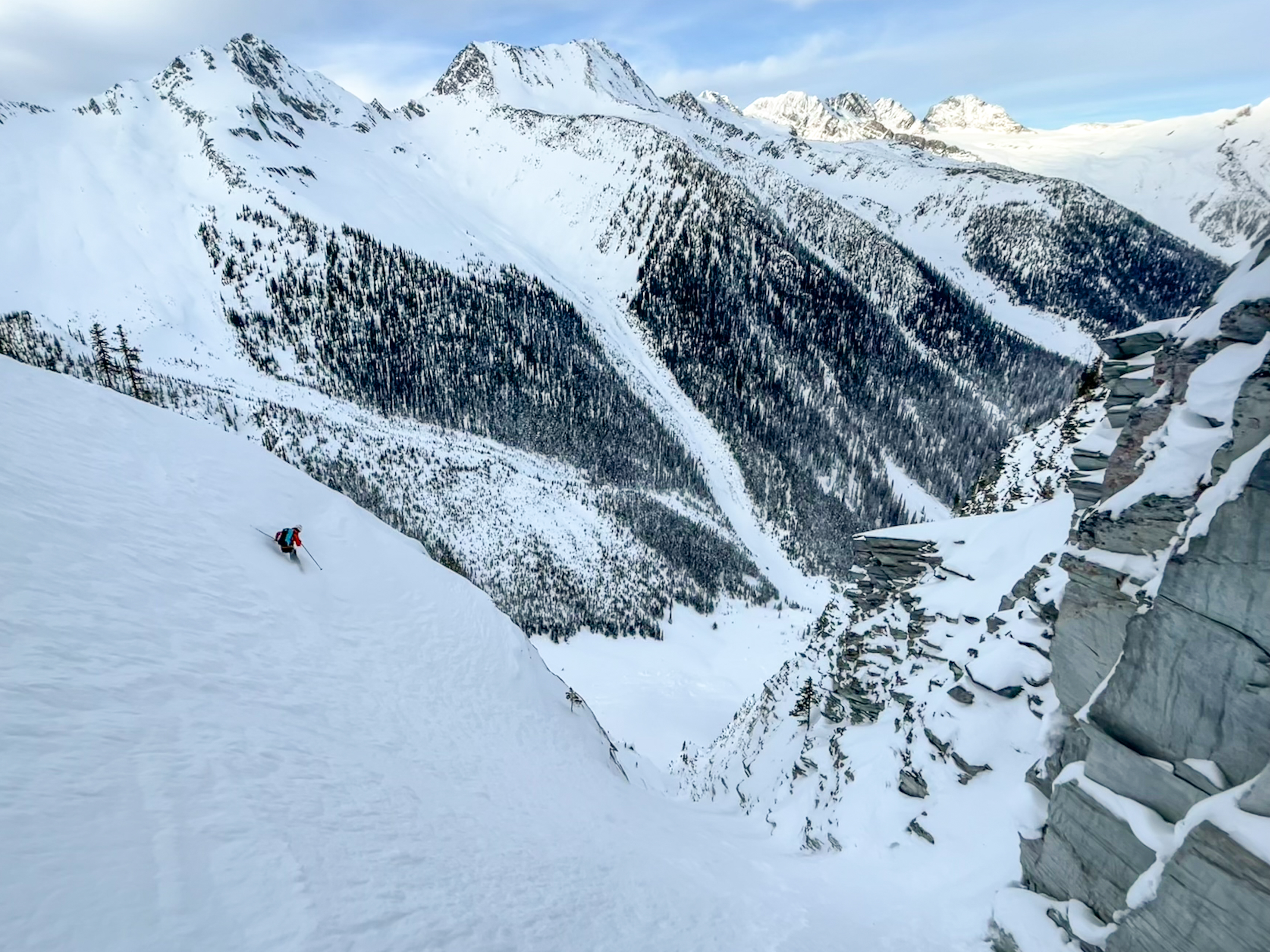 It’s always better to ease into a weather window when possible, so we figured we’d get up to speed with what we like to refer to as steep ski cragging on the north face of Cheops Mountain; a roadside playground if there ever was one. We loaded up the technical toys and blasted up to Balu Pass, scoping lines the whole way.
