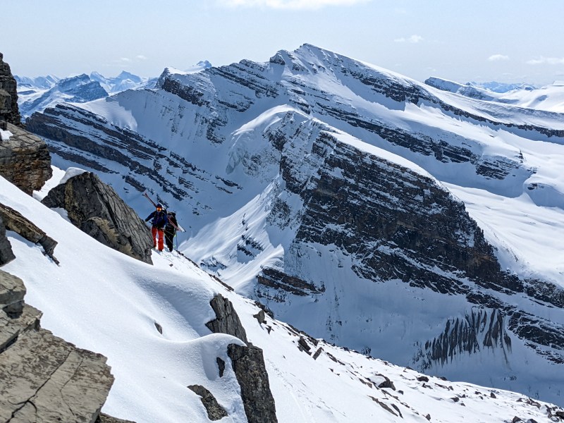 Anyway, all this is to say that I only just got around to skiing it this spring. Which is too bad because, yeah, it’s a steep, glaciated north face, but it’s also an awesome ski tour and the face itself is small enough to be quite manageable. By the time James, Becca, and I went to ski it, we all knew it was a bit shorter of an objective. That was exactly what we were looking for, most of the way through April, as couloir season was slowly giving way to face skiing season in the Rockies.