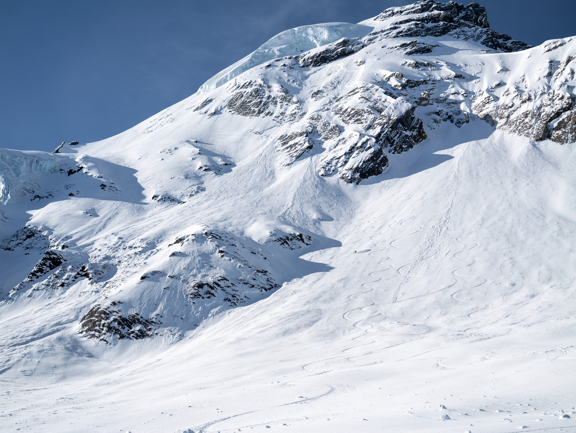 Later, Larry of Icefall Lodge confirmed that, indeed, our tracks had been the first on this beautiful face. A nice surprise and it’s a testament to the strength of the crew and the power of good conditions that we got it done in such a pleasant way.