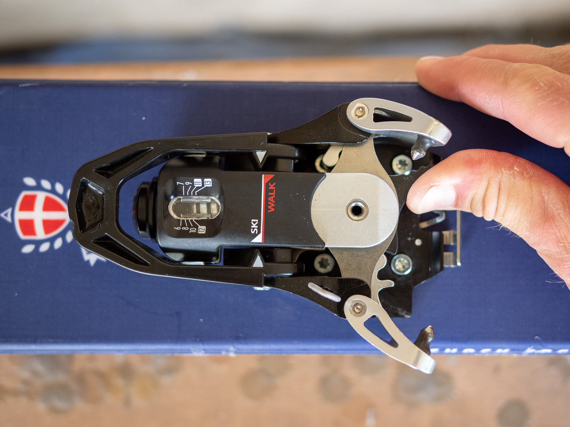 I’ve played with the TR1s a good bit on the workbench. Right away I was impressed by the range of toe elasticity and clever tandem lateral mechanism that keeps both pins in contact with the boot until release. You can see how the pins have been shaped to accommodate this. They’re also metal where it counts, including the heel clamp. Solid.